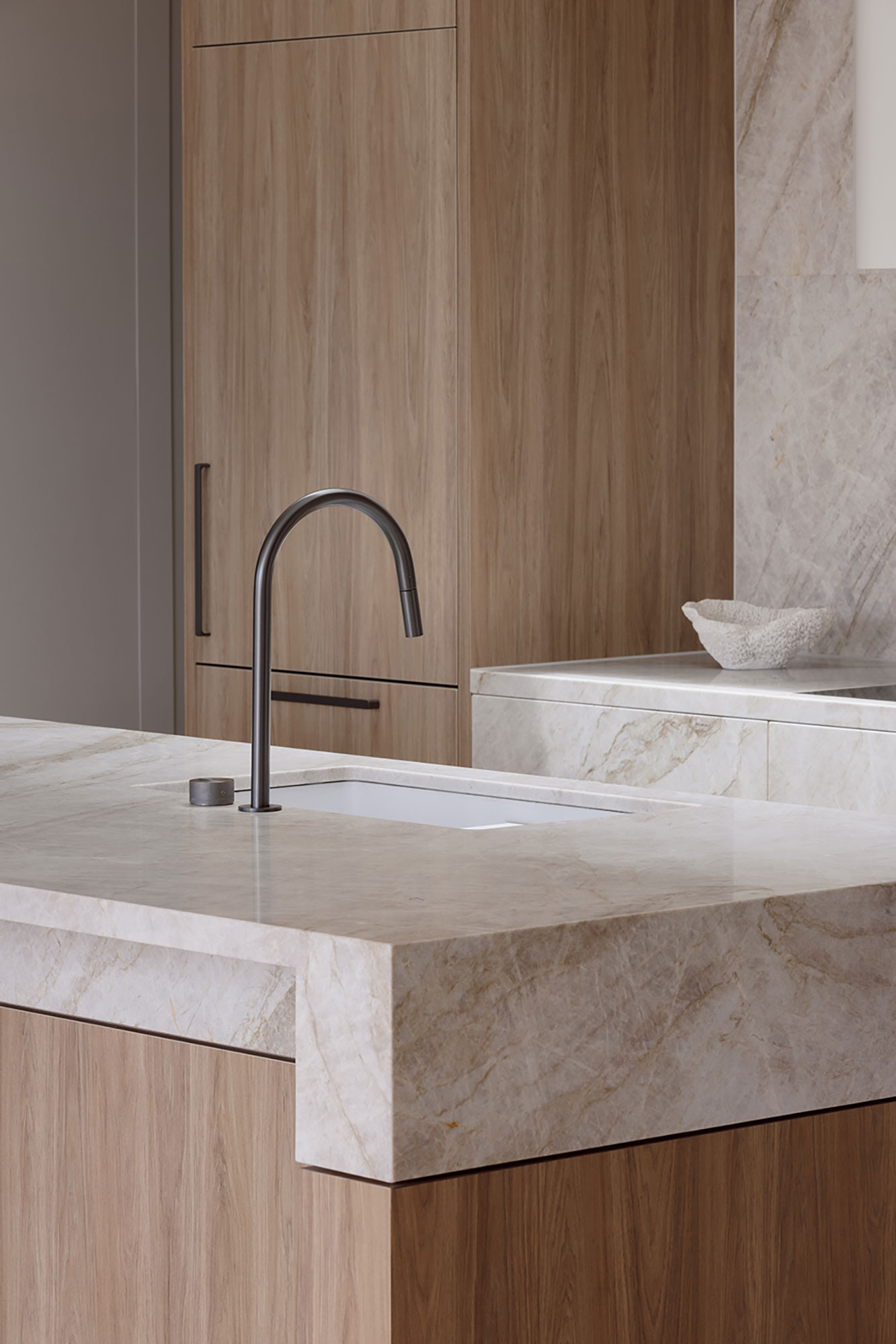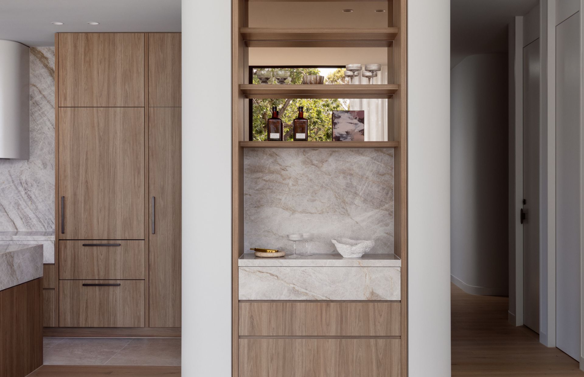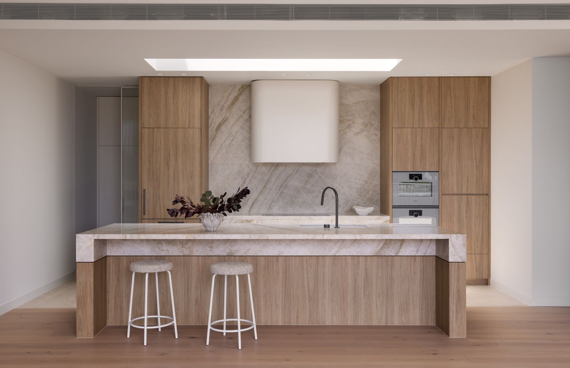 Generous internal proportions serve to elevate the airy, spacious feel, while every element – from the restrained, soft colour treatments to the premium Gaggenau appliances – has been intentionally selected to cultivate an air of refinement and sophistication.